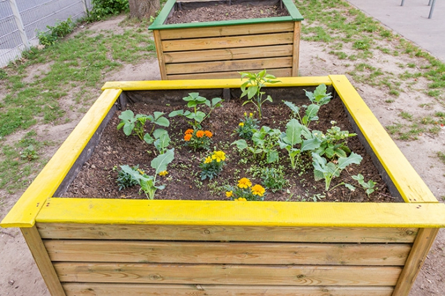 Zum Start in den Frühling wurden auch unsere Hochbeete auf dem Schulhof neu bepflanzt. Kinder aus jeder Jahrgangsstufe pflanzten Blumen und Setzlinge in die mit Erde gefüllten Kästen. Die ersten Blumen, gelbe und orange Tagetes, blühen schon. Nun warten wir gespannt, wie die Kohlrabi größer werden und sich aus den noch gelben Blüten der Erdbeerpflanzen leckere Früchte entwickeln werden. Auch eine Paprikapflanze blüht schon im Hochbeet und es werden dort hoffentlich große Paprikaschoten wachsen.