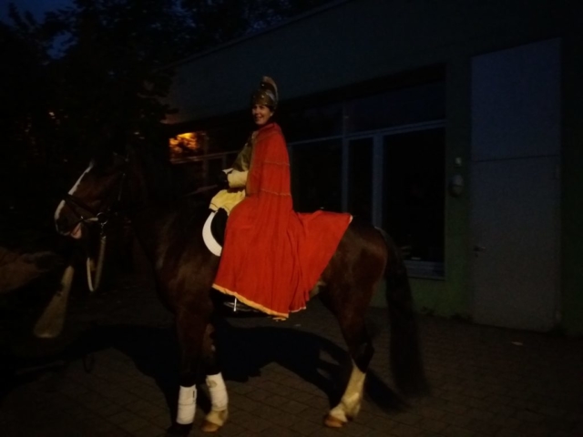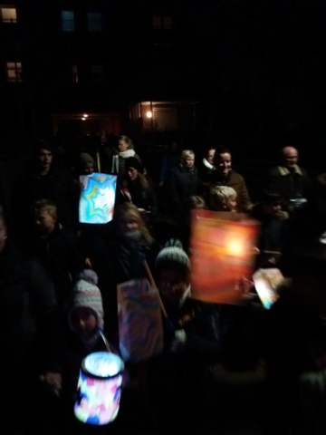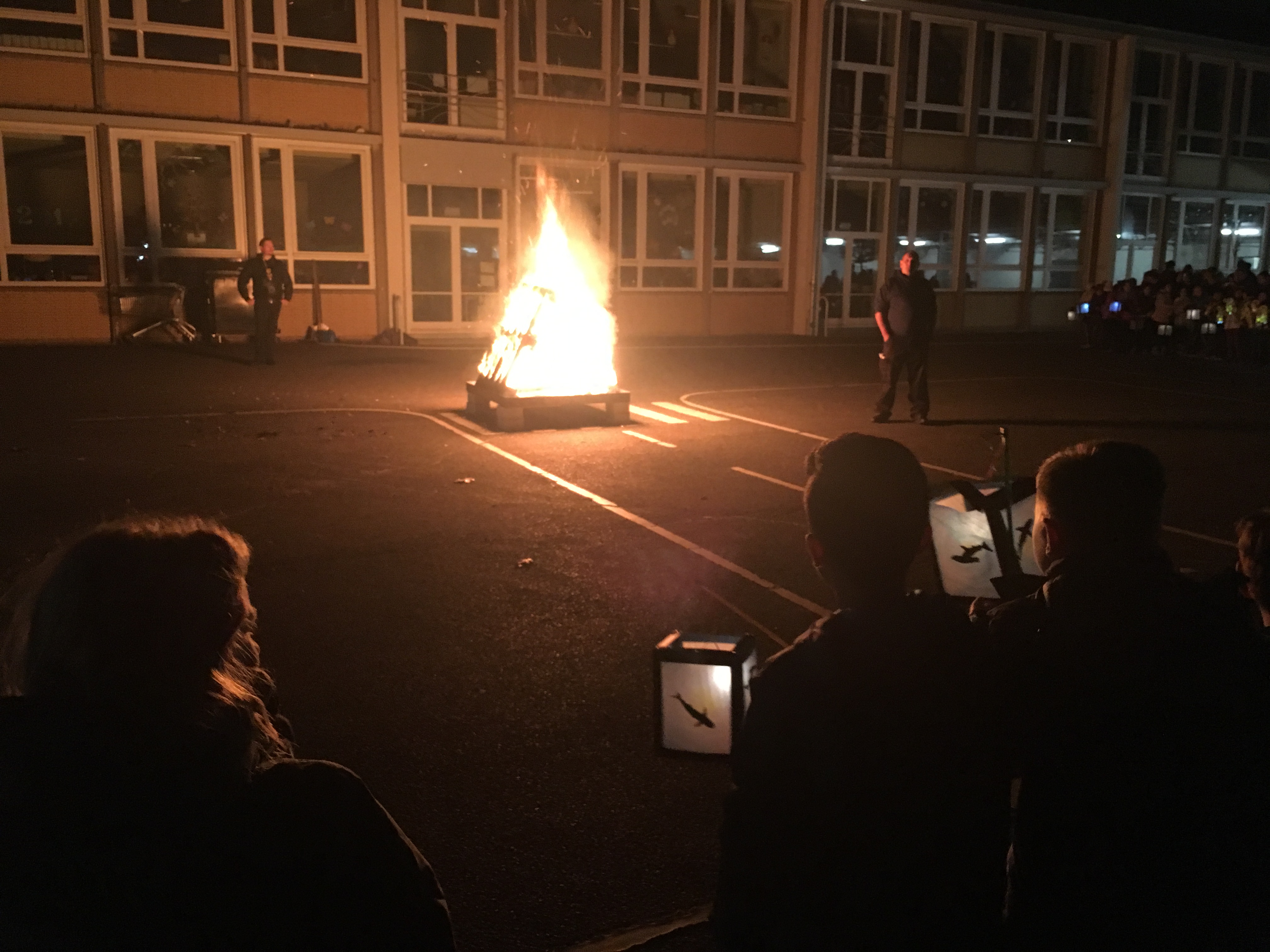 Am 9. November 2017 haben wir unseren diesjährigen Laternenumzug gemacht. Alle Kinder hatten in den Klassen bunte Laternen gebastelt. Alle gemeinsam zogen wir singend durch die Straßen um unsere Schule. Auch unsere Familien waren dabei. Am Ende gab es auf dem Schulhof ein großes Martinsfeuer und einige Kinder führten ein Martinsspiel auf. Sankt Martin auf seinem Pferd sah uns auch zu. Im Anschluss bekamen wir alle in unseren Klassen noch einen Weckmann.